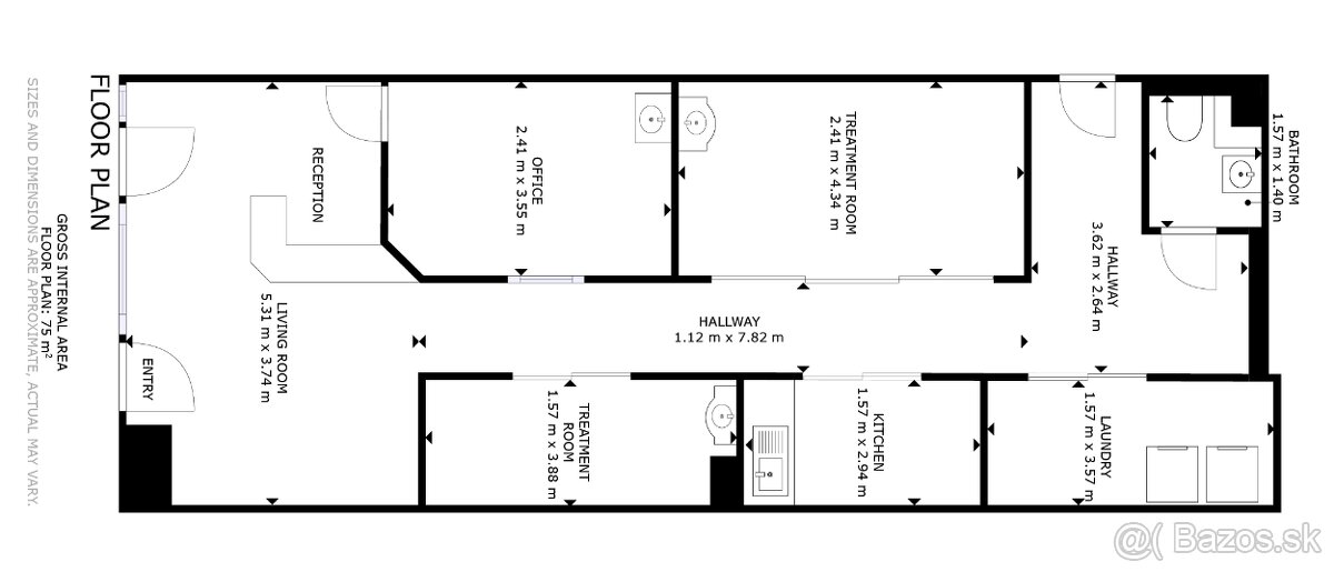 Zariadenie: V priestore je plne vybavená recepcia, vrátane televízie a pohodlnej sedačky, menšia kuchynka, kancelária s nábytkom, oddelené miestnosti, v ktorých sa nachádzajú masážne stoly, práčovňa so spotrebičmi - pračkou a sušičkou. Všetko je plne funkčné a k dispozícii na využívanie v cene nájmu.