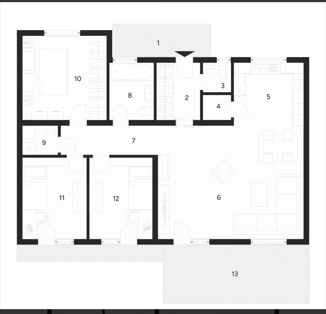 Tento 4-izbový bungalov je navrhnutý pre modernú rodinu s dôrazom na funkčnosť, estetiku a minimálne náklady na prevádzku.